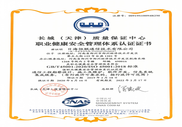 職業(yè)健康安全管理認(rèn)證證書